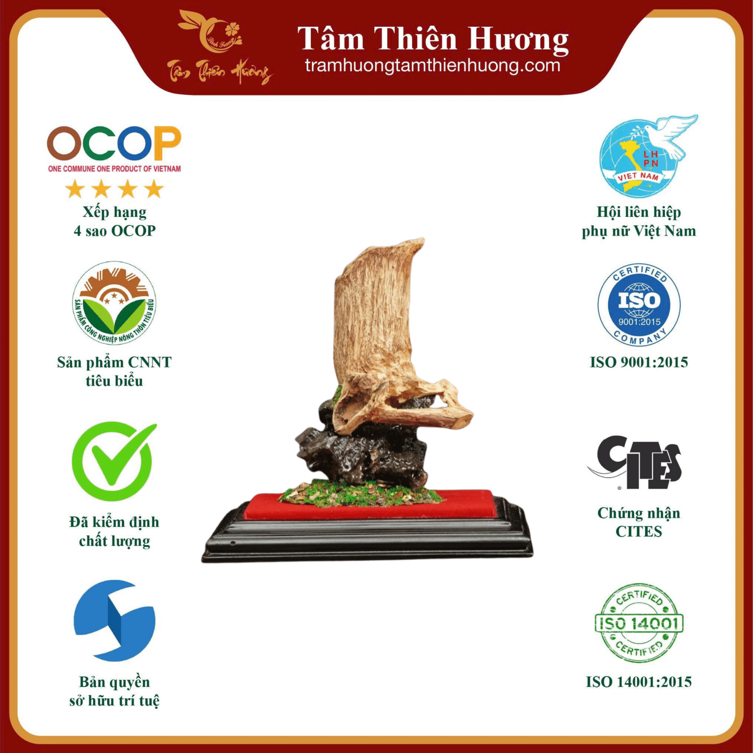 | TỬU ĐÀI VÂN MỘNG – Từ khối trầm hương quý hiếm, nghệ nhân đã khéo léo tạo hình tựa chiếc chén rượu cổ đặt trên đài cao, bao quanh là nền đá vững chãi và thảm xanh mềm mại. Hình ảnh ấy gợi nhớ đến những buổi yến tiệc xưa, khi tao nhân mặc khách nâng chén giữa mây ngàn, đàm đạo về thế sự và thưởng ngoạn cảnh non sông. Trong văn hóa phương Đông, chén rượu không chỉ là vật dụng để thưởng thức mà còn là biểu tượng của tri âm, của những khoảnh khắc giao hòa giữa con người và thiên nhiên. Tên gọi “Tửu Đài Vân Mộng” chứa đựng tinh thần phiêu lãng, khát vọng tự do và niềm vui tao nhã. |